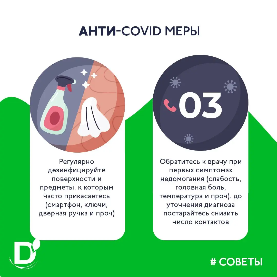 - Обратитесь к врачу при первых симптомах недомогания (слабость, головная боль, температура и проч). до уточнения диагноза постарайтесь снизить контакты с близкими