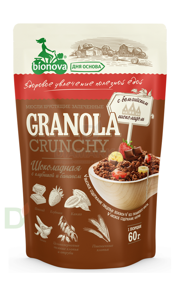 Мюсли Bionova Шоколад запеченные хрустящие, 60г Мюсли Bionova Шоколад запеченные хрустящие, 60г