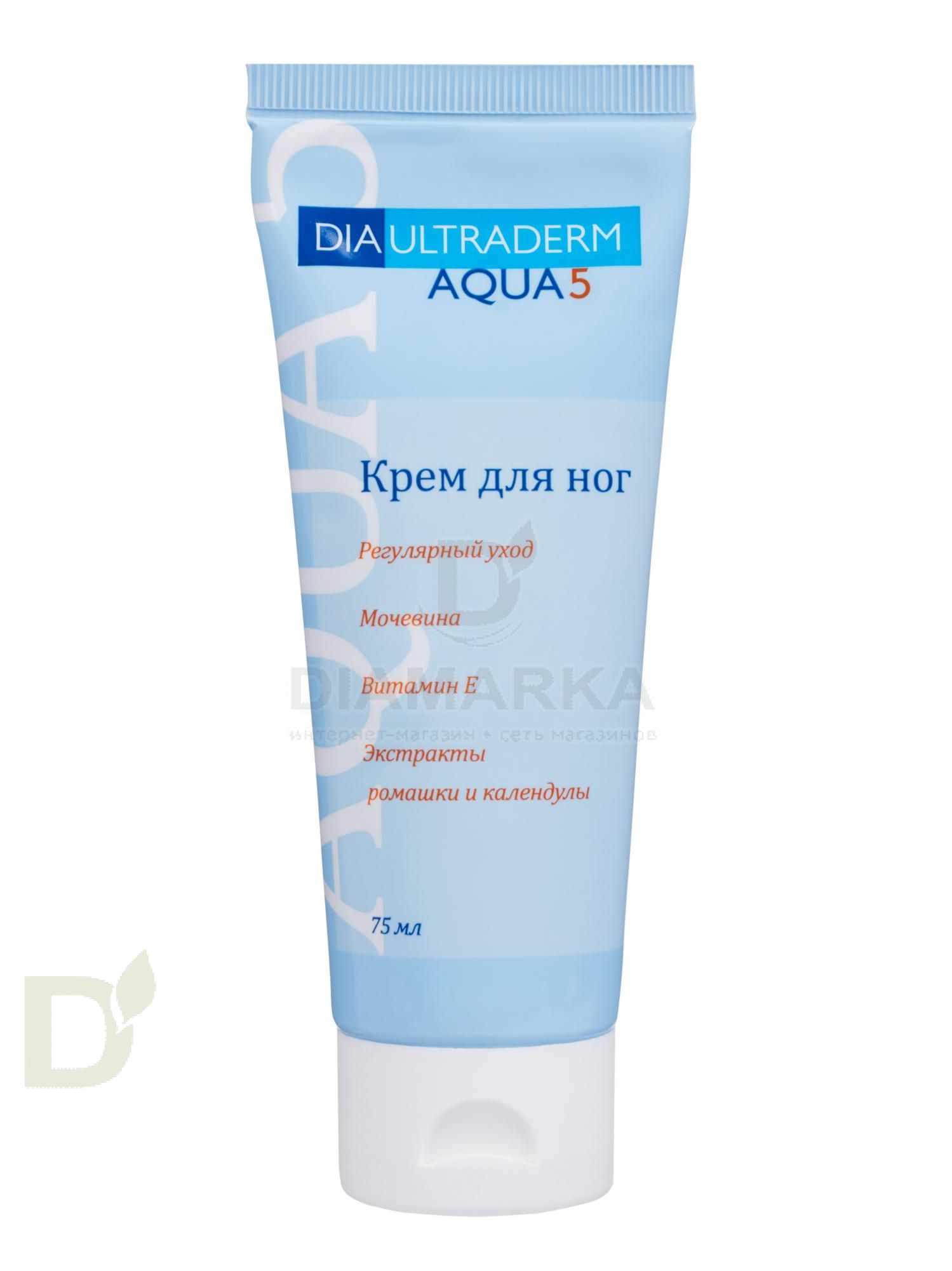 <h2>Эффективное средство для ежедневного ухода за кожей стоп при диабете</h2> Крем для обработки кожи стоп Диаультрадерм аква 5 - эффективное средство, разработанное российскими учеными специально для ухода за кожей стоп при сахарном диабете.<br> <br> Крем сдержит 5% мочевины, что обеспечивает хороший увлажняющий и регенерирующий эффект. Крем быстро впитывается эпидермисом, не оставляет жирной пленки и следов на одеже!<br> <h2>Особенности крема Диаультрадерм АКВА 5</h2> <ul> <li>предупреждает и устраняет воспалительные изменения кожи;</li> <li> нормализует обмен веществ и дыхание клеток;</li> <li> ускоряет заживление микротрещин;</li> <li> снимает зуд и аллергические явления;</li> <li> препятствует образованию сухой, ломкой кожи, а также кожи, склонной к отекам и повреждениям мелких кожных сосудов, страдающих повышенной проницаемостью;</li> <li> замедляет процессы старения и помогает сохранить коже молодость, свежесть и красоту.</li> </ul> <h2>Как использовать крем</h2> Наносите крем ежедневно на сухую чистую кожу стоп массирующими движениями до полного впитывания.<br> Подходит для использования на постоянной основе.<br> Может применяться не только на коже стоп, но и на других участках тела.<br> <h2>Состав крема</h2> мочевина 5 %, витамин Е, экстракты ромашки и календулы.<br> <br> Срок годности: 24 месяца с даты изготовления<br>