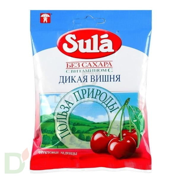Леденцы Зула без сахара с витамином С "Дикая вишня", 60г.