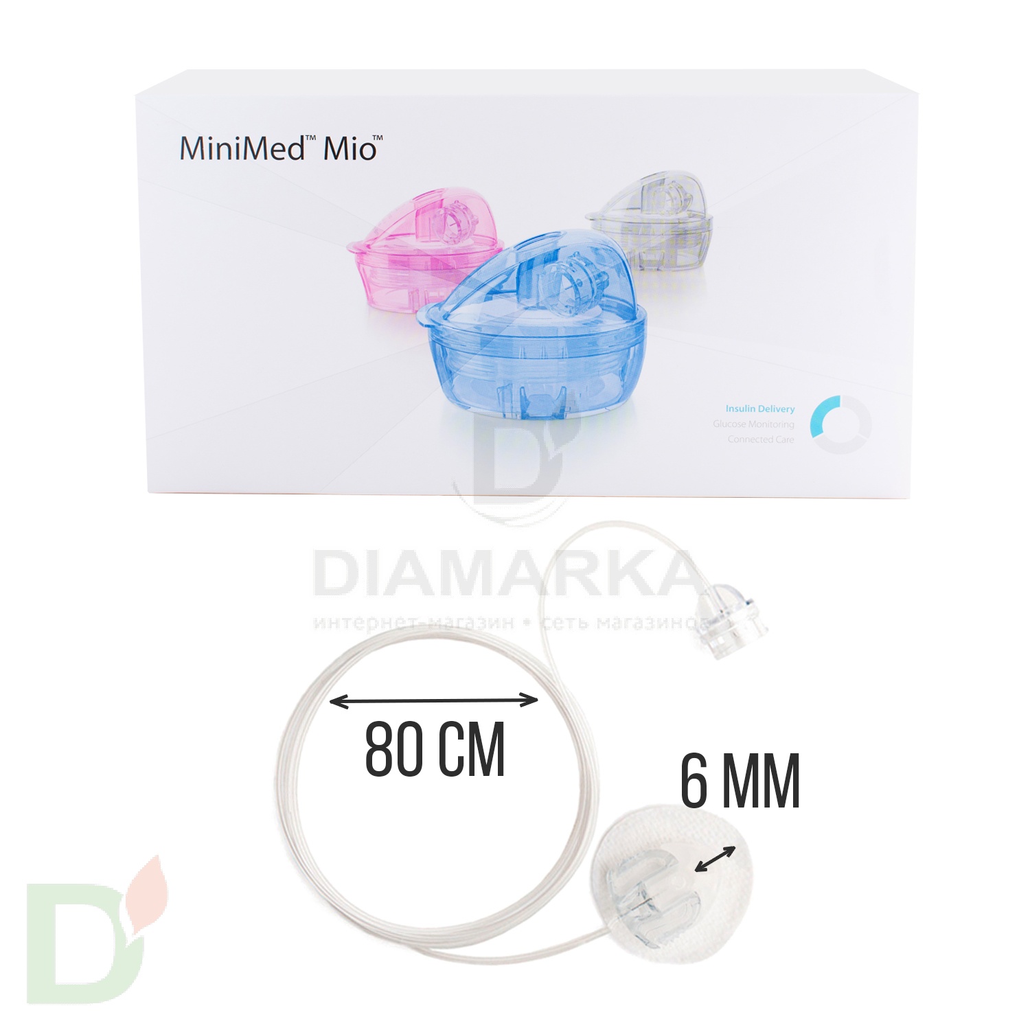 <h2>Инфузионный набор Medtronic MiniMed MIO</h2> <p> Первый дизайн инфузионного набора "всё-в-одном": канюля, катетер и установщик. </p> <ul> <li>Цвет: СЕРЫЙ/ПРОЗРАЧНЫЙ</li> <li>Размер: канюля <strong>6мм</strong>, катетер<strong> 80 см<br> <br> </strong></li> <li>Мягкая тефлоновая канюля ставится под углом 90<sup>о</sup>.</li> <li>Просто использовать: каждый набор упакован в одноразовый установщик, вам остаётся оторвать защитную мембрану и поставить иглу;</li> <li><strong>Удобно брать с собой</strong>: в гостях, на отдыхе, в дороге - отсутствие установщика не застанет вас врасплох! А игла не повредится в сумочке благодаря жёсткому каркасу установщика.</li> </ul> <h3>Инфузионные наборы MIO - прекрасная альтернатива привычным Квик-Сетам!</h3> <p> Благодаря улучшенной форме установщика риск испортить канюлю при установке намного ниже, а яркие заглушки порадуют вас или вашего ребёнка. </p> <p>   </p> <h3>Внимание! Рекомендуем заказать не менее 5 устройств для инфузии МИО от Медтроник</h3> <p> На 5 индивидуальных наборов предусмотрена 1 заглушка для купания. </p> <p> При заказе менее 5 штук - заглушка в посылку не вкладывается. </p> <p> При заказе менее 10 штук и более 5 - в комплекте будет 1 заглушка. <br> </p> <p> <b>*Стоимость указана за 1 шт. (на 3 дня)</b><br> </p> <h3>Инфузионные системы, резервуары, сенсоры, инъекционные порты - одноразовое стерильное медицинское изделие, гарантия на них не предусмотрена. Срок годности инфузионных наборов для помпы MiniMed - 3 года с даты производства. Срок службы - 2-3 дня.</h3>