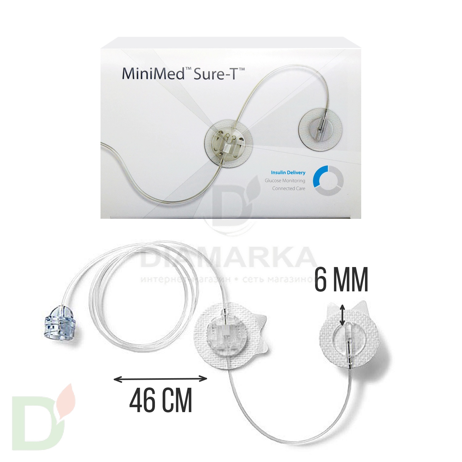 <p> Устройство для инфузии Шуа-Ти 6/45 представляет собой набор из стальной канюли и двух тонких трубочек, которые соединяются с инсулиновой помпой компании Медтроник.  Длина иглы в системе ММТ-862 составляет 6 мм, длина трубочки – 45 см. Отличительной особенностью данной системы является самый маленький из имеющихся на рынке диаметр иглы 29-G. Такая игла очень комфортна в ношении и почти незаметна на теле. Канюля вводится в тело вручную и крепится с помощью специально предусмотренной липкой ленты. При необходимости трубочку можно отсоединить, а иглу заклеить специальным пластырем. Коннектор трубок на расстоянии 10 см допускает разъединение без прикосновения к месту инфузии. Замену канюли нужно производить не реже чем раз в 3 дня. </p> Комплектация: <ul> <li>1 индивидуальная упаковка  состоит из канюли 6 мм, трубочки 46 см.</li> </ul> <p> <strong>Производитель:</strong> Medtronic – США <br> </p> <p> <b>*Стоимость указана за 1 шт. (на 3 дня)</b><br> </p> <h3>Инфузионные системы, резервуары, сенсоры, инъекционные порты - одноразовое стерильное медицинское изделие, гарантия на них не предусмотрена. Срок годности инфузионных наборов для помпы MiniMed - 3 года с даты производства. Срок службы - 2-3 дня.</h3>