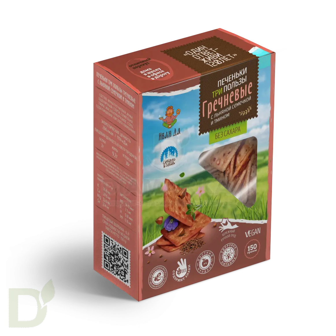 Компания Иван-ДА производит оригинальные и уникальные продукты, которые на все 100% соответствуют принципам здорового питания. Сырье для продукции проходит тщательный отбор, а в составе вы не найдете синтетических компонентов: все изготовлено исключительно с любовью и заботой о здоровье потребителя! Натуральность, уникальность и польза - вот главные ценности бренда.Хрустящее печенье с натуральным составом